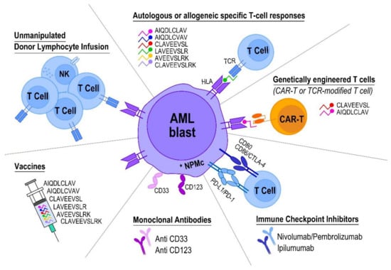 - Berneman, Z.N. Autologous T cells on the attack against AML. Blood 2012, 120, 1151–1152. [Google Scholar] [CrossRef][Green Version]