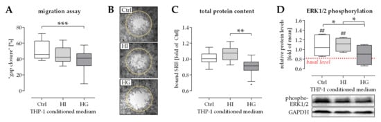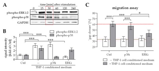 2.2. Activation of ERK1/2 Signaling Was Required for the Positive Effect THP-1 Cell Conditioned Medium Has on Migration of Osteoprogenitor Cells