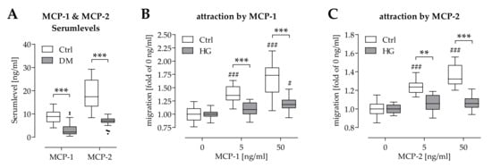 2.4. Hyperglycemia Affected Chemoattraction of Mononuclear Cells by MCP-1 and MCP-2