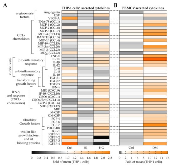 2.5. Pre-/Diabetic Conditions Altered the Secretome of THP-1 Cells