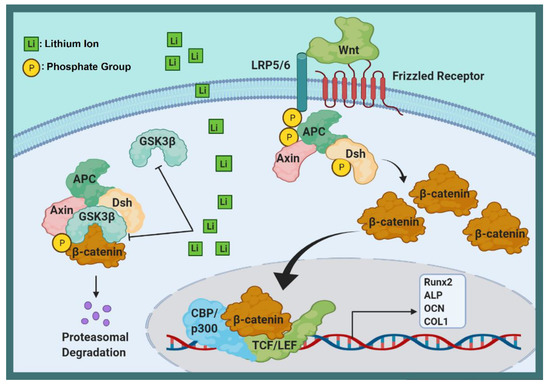 - Li, L.; Peng, X.; Qin, Y.; Wang, R.; Tang, J.; Cui, X.; Wang, T.; Liu, W.; Pan, H.; Li, B. Acceleration of bone regeneration by activating Wnt/β-catenin signalling pathway via lithium released from lithium chloride/calcium phosphate cement in osteoporosis. Sci. Rep. 2017, 7, 45204. [Google Scholar] [CrossRef]