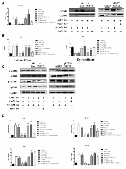 2.6. SNAT2 Promotes Ser Uptake to Activate the mTORC1 Pathway and Inflammatory Responses during APEC XM-Infection