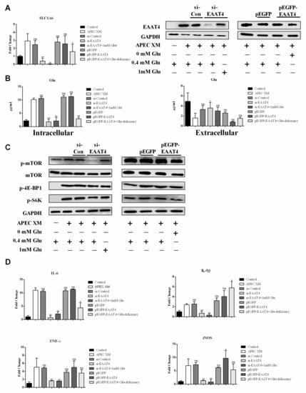 2.7. EAAT4 Promotes Glu Transport to Activate mTORC1 and Inflammatory Responses during APEC XM Infection