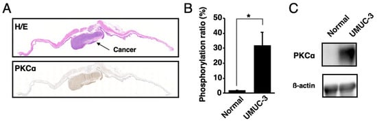 Chicago/Turabian StyleKawano, Takahito, Yoko Tachibana, Junichi Inokuchi, Jeong-Hun Kang, Masaharu Murata, and Masatoshi Eto. 2021. "Identification of Activated Protein Kinase Cα (PKCα) in the Urine of Orthotopic Bladder Cancer Xenograft Model as a Potential Biomarker for the Diagnosis of Bladder Cancer" International Journal of Molecular Sciences 22, no. 17: 9276. https://doi.org/10.3390/ijms22179276