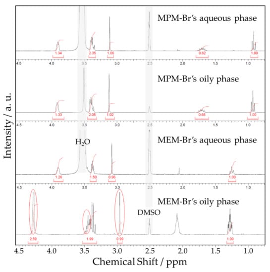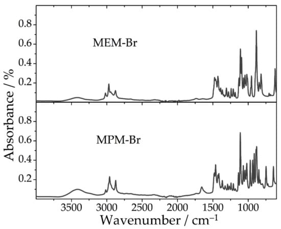 | Functional Group | Frequency Range (cm−1) | Frequency in MPM-Br Spectra * (cm−1) |
