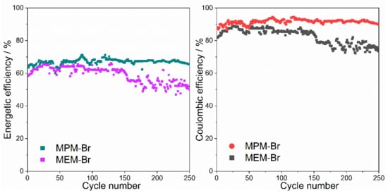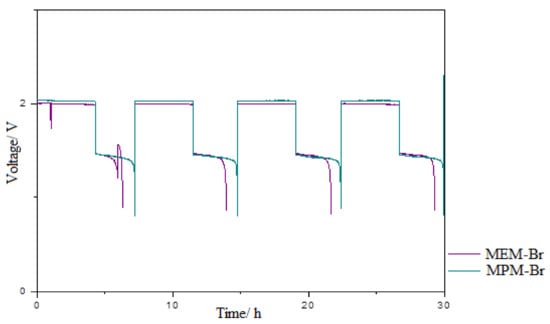 - Jeon, J.-D.; Yang, H.S.; Shim, J.; Kim, H.S.; Yang, J.H. Dual function of quaternary ammonium in Zn/Br redox flow battery: Capturing the bromine and lowering the charge transfer resistance. Electrochim. Acta 2014, 127, 397–402. [Google Scholar] [CrossRef]
