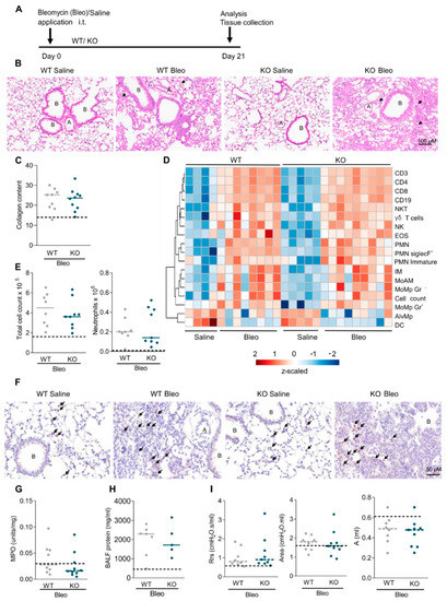 - Chua, F.; Dunsmore, S.E.; Clingen, P.H.; Mutsaers, S.E.; Shapiro, S.D.; Segal, A.W.; Roes, J.; Laurent, G.J. Mice Lacking Neutrophil Elastase Are Resistant to Bleomycin-Induced Pulmonary Fibrosis. Am. J. Pathol. 2007, 170, 65–74. [Google Scholar] [CrossRef] [PubMed] [Green Version]