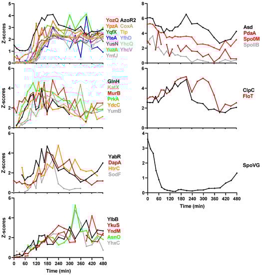 Classification of other sporulation proteins. Z-scores on the Y-axis represent the quantified value of every protein normalized to have a standard deviation of 1.