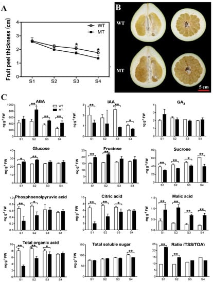 Pan, H.; Lyu, S.; Chen, Y.; Xu, S.; Ye, J.; Chen, G.; Wu, S.; Li, X.; Chen, J.; Pan, D. MicroRNAs and Transcripts Associated with an Early Ripening Mutant of Pomelo (Citrus grandis Osbeck). Int. J. Mol. Sci. 2021, 22, 9348. https://doi.org/10.3390/ijms22179348