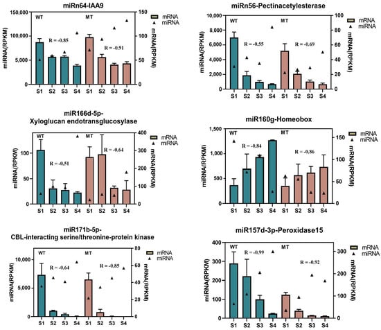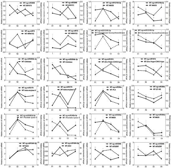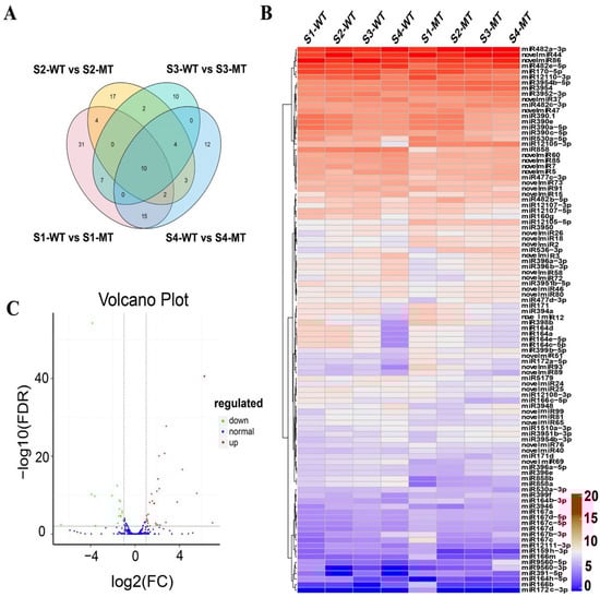 2.3. Comparative Analysis of miRNAs and Their Expression Profiles in WT and MT Juice Sacs during Fruit Ripening