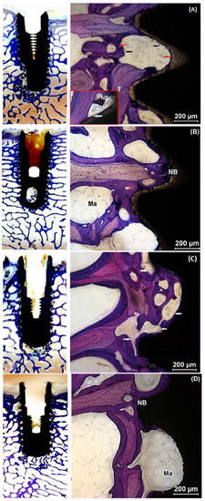 - Franchi, M.; Bacchelli, B.; Giavaresi, G.; De Pasquale, V.; Martini, D.; Fini, M.; Giardino, R.; Ruggeri, A. Influence of different implant surfaces on peri-implant osteogenesis: Histomorphometric analysis in sheep. J. Periodontol. 2007, 78, 879–888. [Google Scholar] [CrossRef]