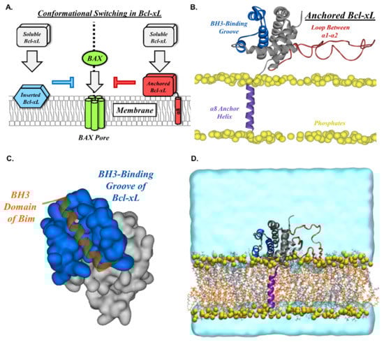 2.1. Orientation of the Soluble Head and Accessibility of the BH3-Binding Groove