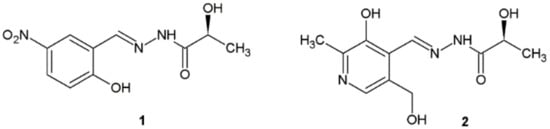 - Polović, S.; Bilić, V.L.; Budimir, A.; Kontrec, D.; Galić, N.; Kosalec, I. Antimicrobial assessment of aroylhydrazone derivatives in vitro. Acta Pharm. 2019, 69, 277–285. [Google Scholar] [CrossRef] [PubMed] [Green Version]