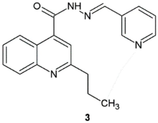 - Ajani, O.O.; Iyaye, K.T.; Aderohunmu, D.V.; Olanrewaju, I.O.; Germann, M.W.; Olorunshola, S.J.; Bello, B.L. Microwave-assisted synthesis and antibacterial propensity of N′-s-benzylidene-2-propylquinoline-4-carbohydrazide and N′-((s-1H-pyrrol-2-yl)methylene)-2-propylquinoline-4-carbohydrazide motifs. Arab. J. Chem. 2020, 13, 1809–1820. [Google Scholar] [CrossRef]
