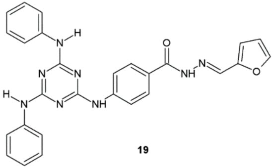 - Haiba, N.S.; Khalil, H.H.; Moniem, M.A.; El-Wakil, M.H.; Bekhit, A.A.; Khattab, S.N. Design, synthesis and molecular modeling studies of new series of s-triazine derivatives as antimicrobial agents against multi-drug resistant clinical isolates. Bioorg. Chem. 2019, 89, 103013. [Google Scholar] [CrossRef]