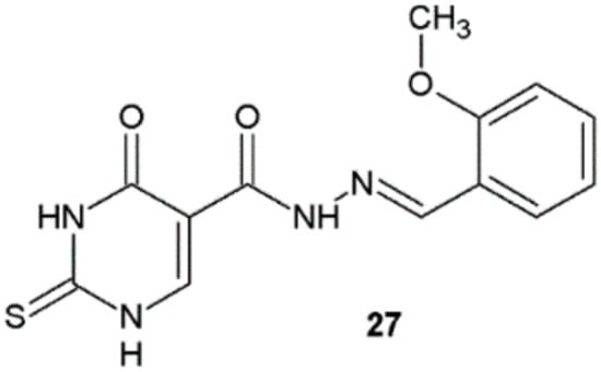 - El-Etrawy, A.-A.; Sherbiny, F.F. Design, synthesis, biological evaluation and molecular modeling investigation of new N′-(2-Thiouracil-5-oyl) hydrazone derivatives as potential anti-breast cancer and anti-bacterial agents. J. Mol. Struct. 2021, 1232, 129993. [Google Scholar] [CrossRef]