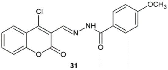 - Angelova, V.T.; Valcheva, V.; Vassilev, N.G.; Buyukliev, R.; Momekov, G.; Dimitrov, I.; Saso, L.; Djukic, M.; Shivachev, B. Antimycobacterial activity of novel hydrazide-hydrazone derivatives with 2H-chromene and coumarin scaffold. Bioorg. Med. Chem. Lett. 2017, 27, 223–227. [Google Scholar] [CrossRef]