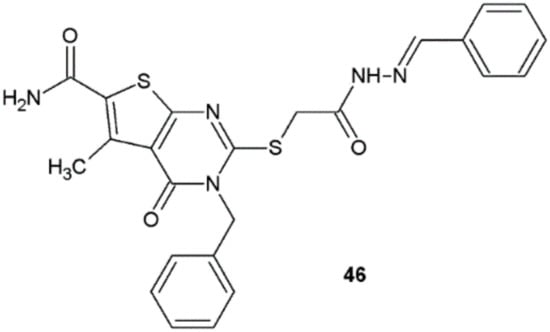- Shaaban, O.G.; Issa, D.A.E.; El-Tombary, A.A.; El Wahab, S.M.A.; Wahab, A.E.A.; Abdelwahab, I.A. Synthesis and molecular docking study of some 3,4-dihydrothieno[2,3-d]pyrimidine derivatives as potential antimicrobial agents. Bioorg. Chem. 2019, 88, 102934. [Google Scholar] [CrossRef]