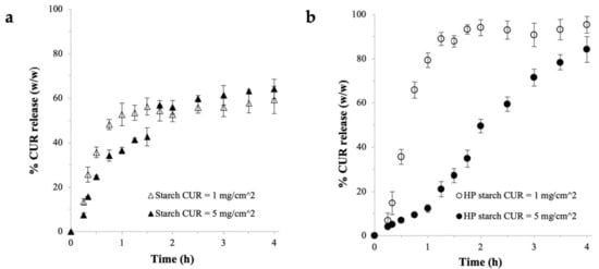 3.2.5. CUR Dissolution from Buccal Film and Film Disintegration