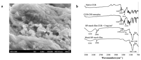 3.2.2. Preparation of CUR–CHI Nanoplex-Loaded Buccal Film