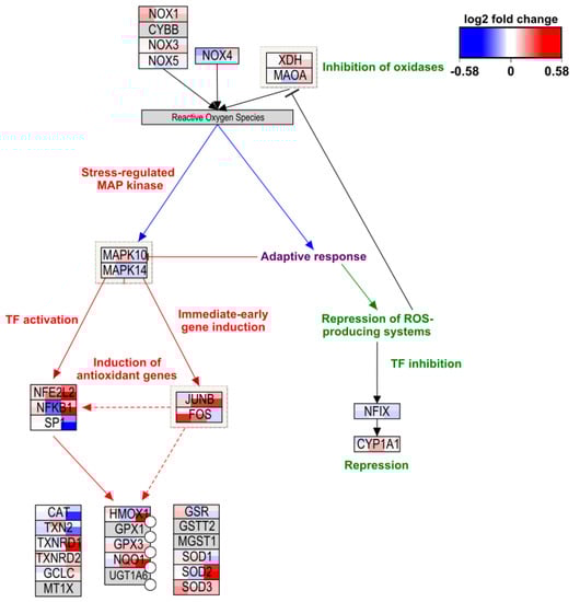- Reyes, I.; Hanspers, K.; Pico, A.; Schmidt, H.; Willighagen, E.; Rashid, K.; van Iersel, M.; Reyes, N.; Deng, X. Oxidative Stress (Homo Sapiens). 2020. Available online: https://wikipathways.org/instance/WP408_r106567 (accessed on 28 August 2021).