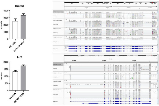 The mRNAs that encode Kmt2d and Inf2 were regulated by mmu-let-7e-5p and were over-represented in the PFC of NET-KO mice as compared to WT animals (Figure 5).