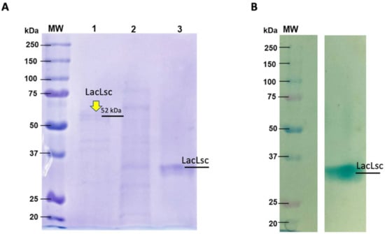 - Laemmli, U.K. Cleavage of structural proteins during the assembly of the head of bacteriophage T4. Nature 1970, 227, 680–685. [Google Scholar] [CrossRef]