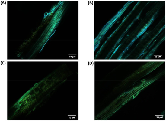 Confocal laser scanning microscopy (CLSM) was applied to analyze lignin distribution with the cell wall before and after enzymatic pretreatment. CLSM allows mapping lignin by measuring its fluorescence emission spectra. The images from CLSM were collected from biomass surface using a Zeiss LSM 780 confocal microscope with a Coherent Chameleon laser (Tisapphire) for a two-photons (2 P) excitation and a Plan-Apochromat objective lens (20×) as described previously [5,30]. In addition, fluorescence measurements were performed for all non-treated and pretreated samples with the same acquisition parameters.