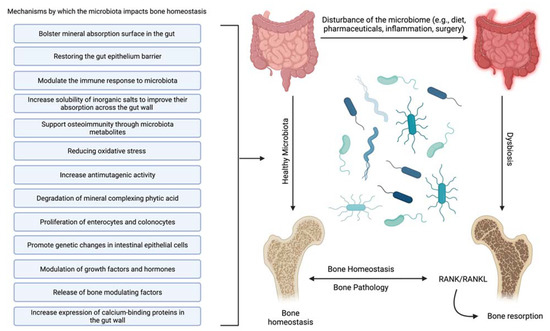 - Bolster mineral absorption surface in the gut—By promoting the proliferation of enterocytes and colonocytes, gut microbiota homeostasis is mediated, and mineral absorption in the gut is supported. Furthermore, increased colonocyte metabolism has been documented to promote obligate anaerobes, which are known to metabolize fiber, thereby increasing SCFAs, which is critical for bone homeostasis, among other physiological functions [59].