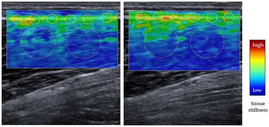 - Agten, C.; Buck, F.M.; Dyer, L.; Flück, M.; Pfirrmann, C.; Rosskopf, A.B. Delayed-Onset Muscle Soreness: Temporal Assessment with Quantitative MRI and Shear-Wave Ultrasound Elastography. Am. J. Roentgenol. 2017, 208, 402–412. [Google Scholar] [CrossRef]