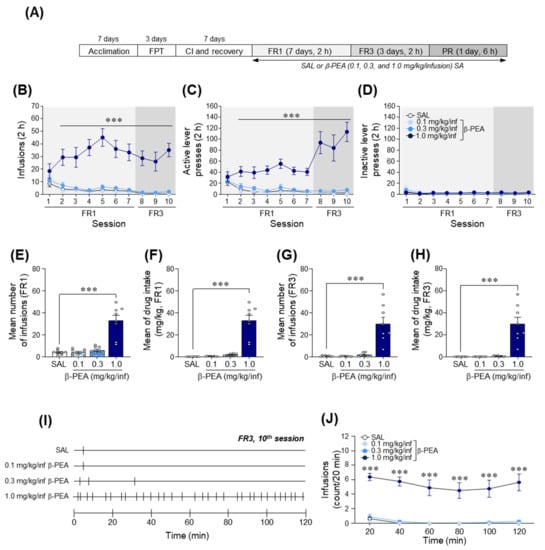 2.4. β-PEA Was Self-Administered under Fixed Ratio Schedules of Reinforcement in Rats