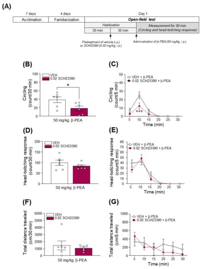2.8. Blockade of DAD1R Significantly Decreased β-PEA-Taking Behavior