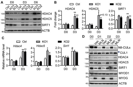 2.4. Neddylation Deficiency Blocks Myoblast Differentiation Potentially through Modulating Class II and III HDACs