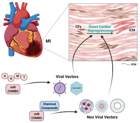 - López-Muneta, L.; Miranda-Arrubla, J.; Carvajal-Vergara, X. The Future of Direct Cardiac Reprogramming: Any GMT Cocktail Variety? Int. J. Mol. Sci. 2020, 21, 7950. [Google Scholar] [CrossRef] [PubMed]