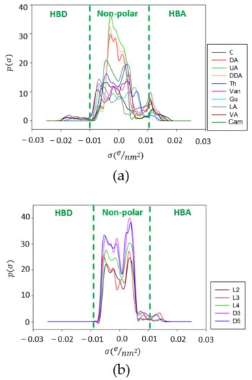 σ-profiles of (a) DES components and (b) siloxanes.
