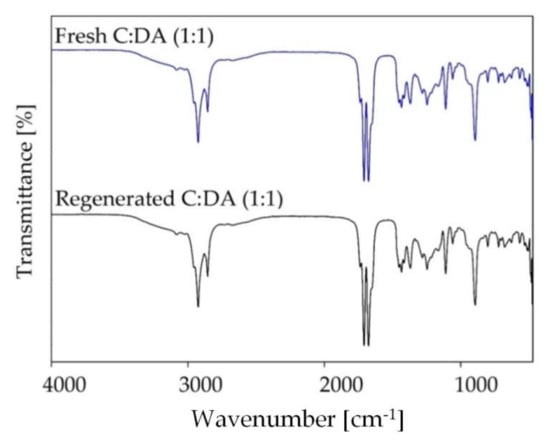 FT-IR spectra of the DES-based absorbent after the regeneration process.