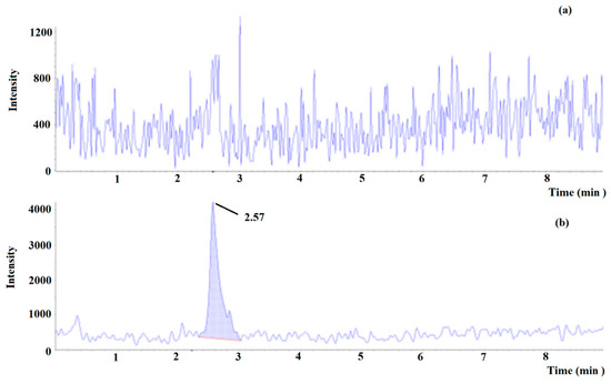 The highest recovery was observed when 1% of the formic acid in methanol was used as an eluent and a volume of 0.75 mL was sufficient to desorb all adsorbed analyte effectively. The lowest analyte loss was due to washing the sorbent with 0.01% ammonium hydroxide in water (Figure A1 in Appendix A). Simultaneously, no ME was observed (ME = 97–102%) for either of tested solvents, proving the high purity of the extract.