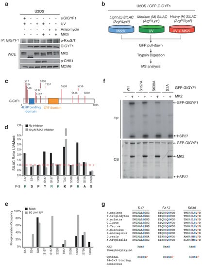 2.1. GIGYF1 Is Phosphorylated and Bound by 14–3–3 after Stress