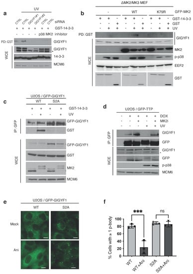 2.2. MK2 Phosphorylation and 14–3–3 Binding Excludes GIGYF1 from p-Bodies