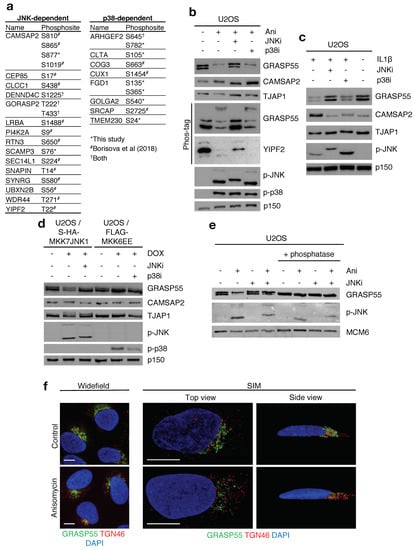 2.3. Multiple Golgi Apparatus-Associated Proteins Are Targets of JNK- and p38-Dependent Phosphorylation