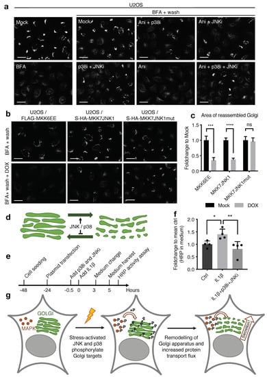 Nordgaard C, Tollenaere MAX, Val AMD, Bekker-Jensen DB, Blasius M, Olsen JV, Bekker-Jensen S. Regulation of the Golgi Apparatus by p38 and JNK Kinases during Cellular Stress Responses. International Journal of Molecular Sciences. 2021; 22(17):9595. https://doi.org/10.3390/ijms22179595