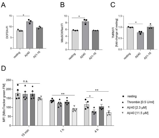 2.1. Effects of Aβ40 on Mitochondria in Platelets