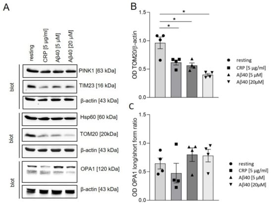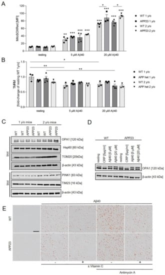 2.3. Impact of Extracellular Aβ40 on Mitochondrial Proteins
