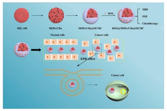 - Lin, C.; Sun, K.; Zhang, C.; Tan, T.; Xu, M.; Liu, Y.; Xu, C.; Wang, Y.; Li, L.; Whittaker, A. Carbon dots embedded metal organic framework @ chitosan core-shell nanoparticles for vitro dual mode imaging and pH-responsive drug delivery. Microporous Mesoporous Mater. 2020, 293, 109775. [Google Scholar] [CrossRef]
