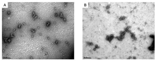 Colloidal chitosan/tripolyphosphate (CS/TPP) particles prepared by ionic gelation have attracted significant attention as potential delivery vehicles for drugs, genes, and vaccines. Yet, there have been several fundamental studies that showed these particles disintegrate at physiological pH (pH 7.2–7.4) and ionic strength levels. Echeverri-Cuartas et al. [] explored the possibility of improving a TPP-crosslinked CS NP stability through a chemical modification of CS. Specifically, CS samples with either 76% or 92% degrees of deacetylation (DD) were grafted with either polyethylene glycol (PEG), or folic acid (F). Within the degrees of substitution (~1% for PEG, and 3% and 6% for F), neither PEG nor F qualitatively improved CS NP stability at physiological conditions (pH 7.2). Another way to improve this stability was explored by Abdelgawad et al. []. They used hexametaphosphate (HMP) instead of TPP as a cross-linking agent. HMP is a hexavalent molecule in the neutral and slightly basic medium which offers more binding sites readily available for interaction with CS. It is thought that increasing the availability of the binding sites in the HMP molecule would result in stronger ionic complexation with CS cationic moieties. Consequently, such stronger binding should improve particles’ stability and lead to average size reduction. A comparative study between CS/TPP and CS/HMP NPs under different complexation conditions was conducted to investigate the effect of HMP on NPs formation. Although the drug loading efficiency of BSA, 96.3%, was higher than when using TPP, 91.87%, the TPP cross-linked particles showed superior stability upon storage. Cai and Lapitsky [] proved that the particles could be stabilized by their bioactive payloads. They studied the enhancement of the CS/TPP particle stability at physiological ionic strengths, using 150 mM NaCl (pH 5.5) and PBS (pH 6.0) as the dissolution media when associating the CS/TPP particles with model anionic proteins (α-lactalbumin, α-LA, and bovine serum albumin, BSA) and polynucleotides (DNA). Light scattering and UV–VIS spectroscopy revealed that anionic protein uptake had no impact on particle stability. It was likely due to the relatively weak protein/particle binding at near-physiological ionic strengths, which caused the protein to be rapidly released. Conversely, a DNA uptake increased the CS fractions persisting in a complexed/particulate form in model dissolution media, with the DNA remaining largely complexed to the CS at all investigated conditions. The results suggested that, while most bioactive payloads do not interact with CS strongly enough to stabilize the CS/TPP particles, these particles can be stabilized to dissolution through the incorporation of polyanions.