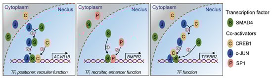 2.4. Three Coactivators (CREB1, c-JUN, and SP1) Are Essential for SMAD4-Mediated Feedback Regulation of TGF-β Family Signaling Pathways