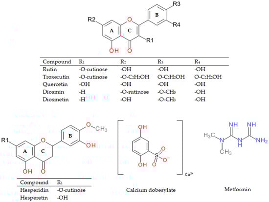 - Liu, J.; Li, S.; Sun, D. Calcium Dobesilate and Micro-vascular diseases. Life Sci. 2019, 221, 348–353. [Google Scholar] [CrossRef]