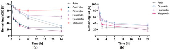 3.5. Time Course Study of MGO and GO Scavenging Reaction