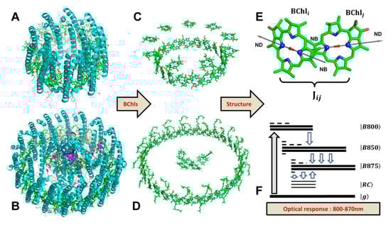 - Hu, X.C.; Ritz, T.; Damjanovic, A.; Autenrieth, F.; Schulten, K. Photosynthetic apparatus of purple bacteria. Q. Rev. Biophys. 2002, 35, 1–62. [Google Scholar] [CrossRef]