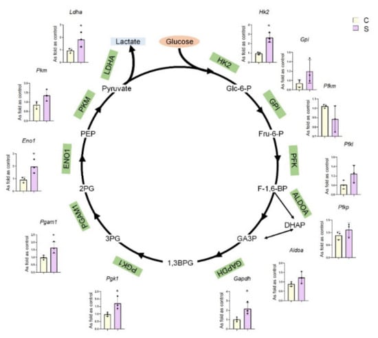 - Soto-Heredero, G.; Gomez de Las Heras, M.M.; Gabande-Rodriguez, E.; Oller, J.; Mittelbrunn, M. Glycolysis—a key player in the inflammatory response. FEBS J. 2020, 287, 3350–3369. [Google Scholar] [CrossRef] [Green Version]